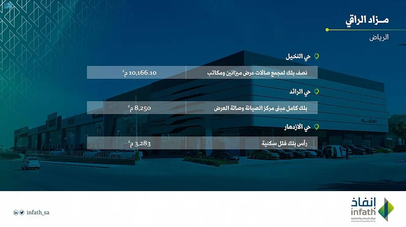 أعلن مركز الإسناد والتصفية «إنفاذ»، عن مزاد الراقي الحضوري الذي يقام تحت إشرافه على 3 فرصٍ عقارية كبرى في مدينة الرياض، وذلك يوم الاثنين الموافق 10 من شهر يناير 2022م.