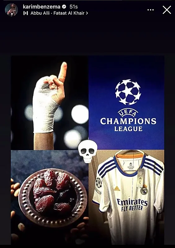 ونشر نجم الاتحاد تلك العلامات عبر ستوري إنستجرم الخاص به بجوار التمر وقميص ريال مدريد في هذا الموسم، ليحتفي اللاعب بأفضل ذكرياته مع فريقه السابق.
