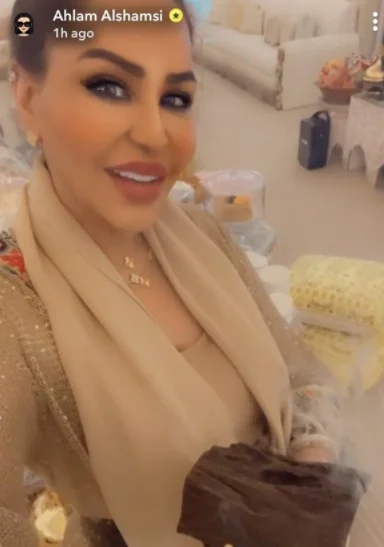 أظهرت صورة المطربة الإماراتية أحلام الشامسي صورة وهي تحمل مبخرة يعلوها كسرة ضخمة من العود.