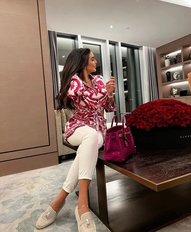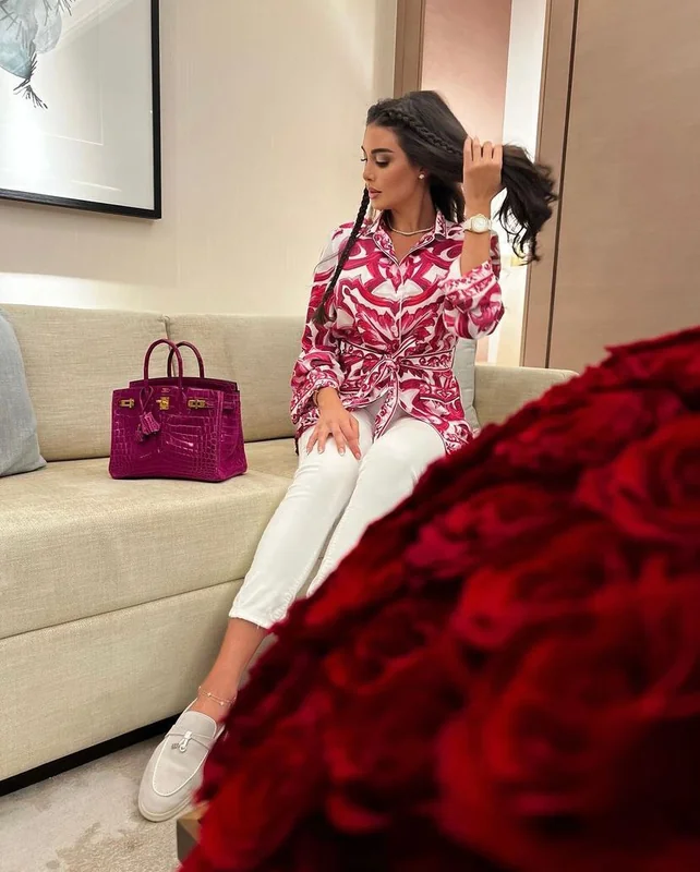 ويأتي ذلك بالإضافة إلى حذاء أبيض مسطح باللون الأبيض، مع حقيبة يد متوسطة الحجم باللون الفوشيا، من تصميم دار Hermes، من طراز Birkin وبلغ سعرها 66 ألف و207 دولار، أي ما يعادل 2 مليون و48 ألف جنيه.