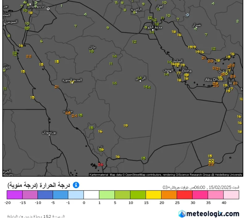 وأشار الحصيني، وفقاً للمراصد الجوية، إلى انخفاض كبير في درجات الحرارة فجر اليوم السبت، حيث سجلت القريات أقل درجة حرارة بـ 0°C، فيما بلغت الحرارة في الرياض 14°C.