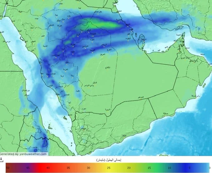 وأضاف أنه في الساعات الأولى من صباح اليوم، شهدت مناطق مكة، الرياض، الشرقية، شرقي المدينة، وحائل سحباً ممطرة.