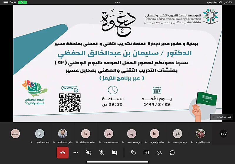 بالصور .. حفل افتراضي بمناسبة اليوم الوطني بالتدريب التقني في محايل عسير