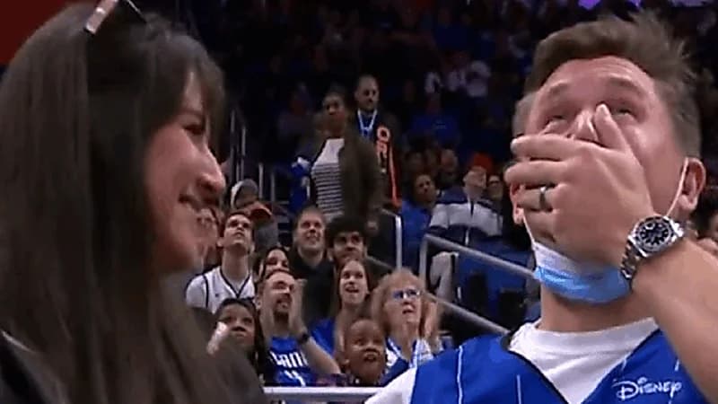 فوجئ أحد مشجعي كرة السّلّة خلال مباراة لفريق أورلاندو ماجيك بإعلان زوجته خبر حملها له على الشاشة الكبيرة أمام الجمهور بأكمله.