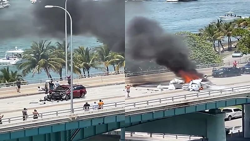 وثق مقطع فيديو، لحظة اصطدام طائرة صغيرة بجسر في ميامي، ما أسفر عن مقتل شخص ونقل خمسة آخرين إلى المستشفى.