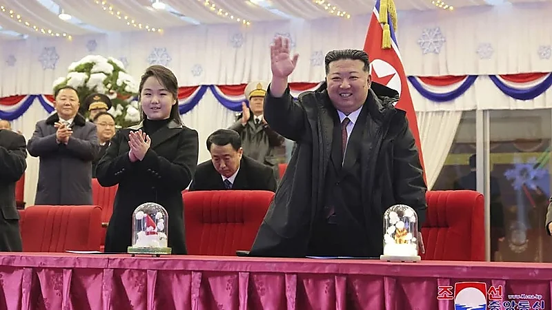 احتفل زعيم كوريا الشمالية كيم جونج أون وابنته جو إي، بالعام الجديد في احتفالات شملت إطلاق ألعاب نارية وعرضا للرقص على الجليد.